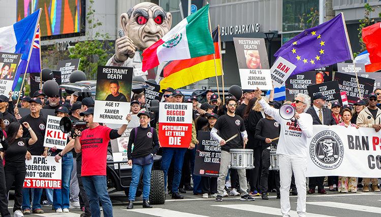 Los Angelesben a CCHR nagyszabású tüntetést rendezett az Amerikai Pszichiátriai Társaság ellen. Több százan gyűltek össze az APA éves találkozójának helyszíne előtt, olyan transzparensekkel, amelyeken olyan feliratok szerepeltek, mint: „Tiltsák be a pszichiátriai kényszerítést”, valamint „A gyerekek levegőért könyörögtek, és a pszichiátria hagyta őket meghalni.” Egy óriáskivetítőn a CCHR ECT-dokumentumfilmjének részletei futottak, miközben egy hatalmas „sokkdoktor” vonta magára a figyelmet. Egy ENSZ-képviselő is csatlakozott a menethez, a régóta küzdő szabadságharcosokkal együtt skandálva: „Hé, hé, APA! Állítsátok le a kínzást, állítsátok le a fájdalmat!” Egy járókelő, akinek arcán látszott a hatalmas megkönnyebbülés, elmondta, hogy két szerettét is elvette tőle a pszichiátria, de most reményt adott neki a CCHR eltökélt küzdelme.